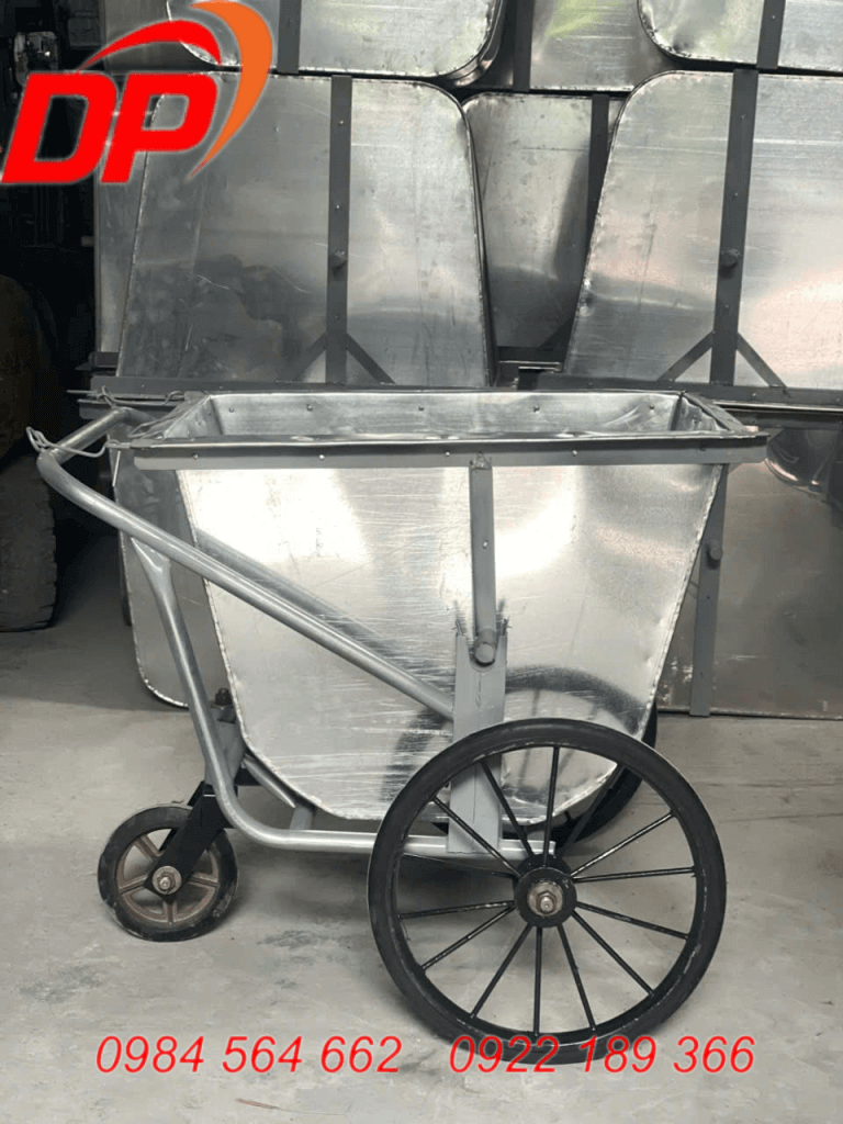 Hình ảnh xe đẩy rác 400 lít bằng tôn mạ kẽm